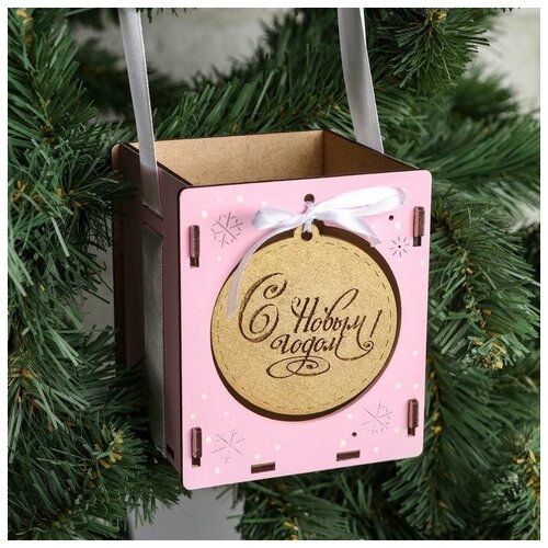 Кашпо деревянное, 10.5×10.5×12 см "Новогоднее. Шар", подарочная упаковка, розовый-золотой