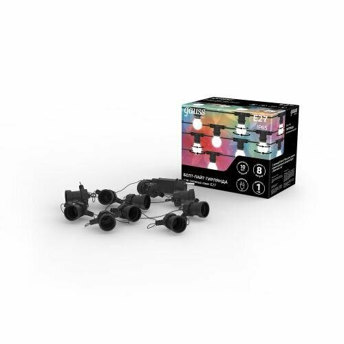 Gauss Гирлянда светодиодная "Белт Лайт" Holiday для сменных ламп Е27, 10 ламп, 7,7 м, IP65, 1/8