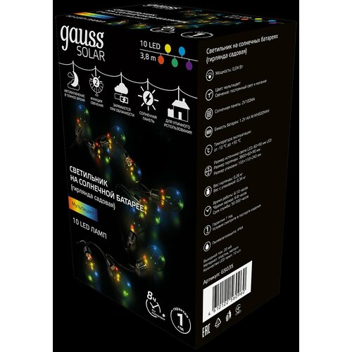 Гирлянда светодиодная "Белт Лайт" Gauss серия Holiday, 10 ламп, 7,7 м, IP44, мультицвет