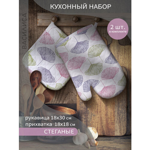Набор кухонный Василиса рукавица + прихватка, Рогожка, хлопок 100%, Цветение