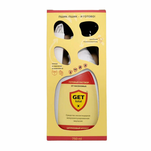 Готовый раствор GET Total от клопов, тараканов, 750 мл. с запахом цитруса