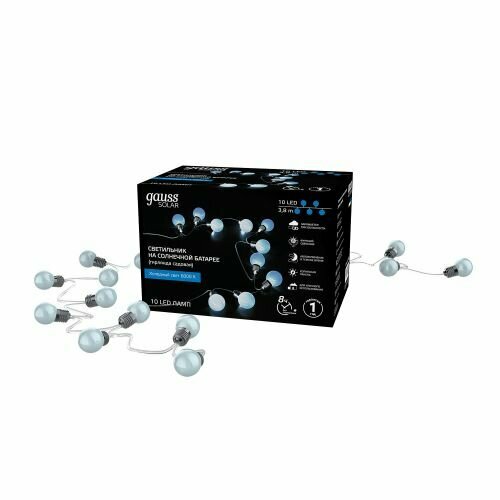 Гирлянда садовая на солнечной батарее GAUSS 10 LED ламп Большие Шары Белый свет, 1/24
