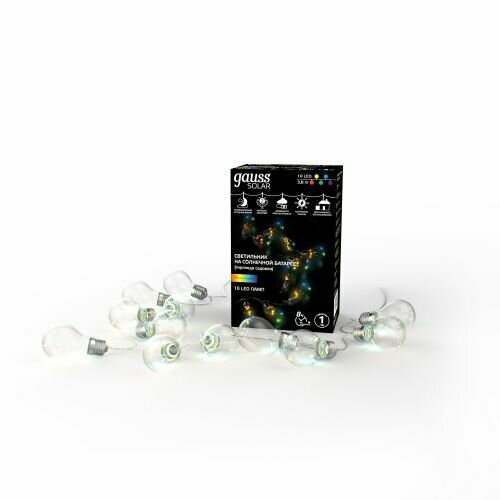 Гирлянда садовая на солнечной батарее GAUSS 10 LED ламп Большие Шары, мультицвет 1/12