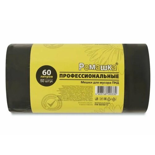 Мешки для мусора, 60 л, 50 шт, "Профессиональные", черные, ромашка (58х68 см/10 мкН) (ПФ-60/50/12)