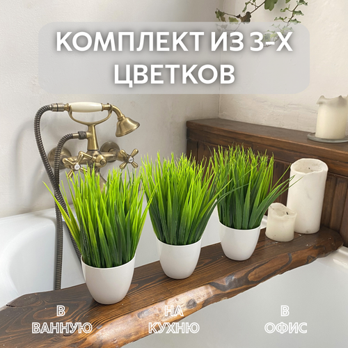 Искусственные цветы для декора в горшках набор 3 шт, трава осока в кашпо