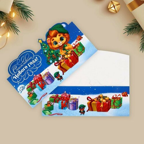 Конверт для денег формовой «Счастливый Новый год», лев, 17.5 х 9 см (комплект из 65 шт)
