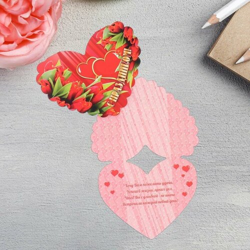 Валентинка "Сердце!" тюльпаны, 14,5х12 см