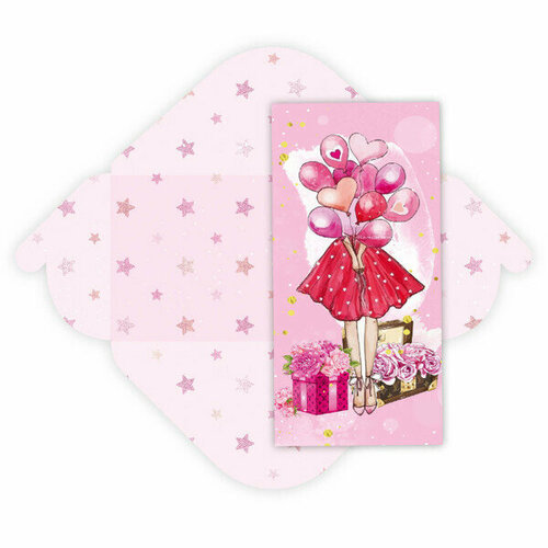 Конверт для денег стандарт «Девушка с шариками» без надписи