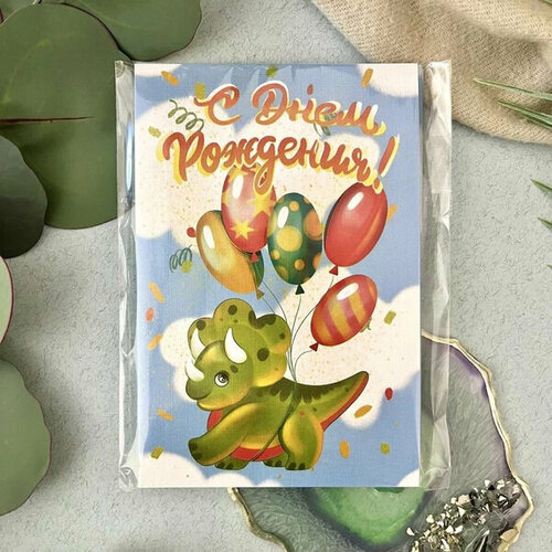 Дизайнерская открытка «С днем рождения» (динозаврик)