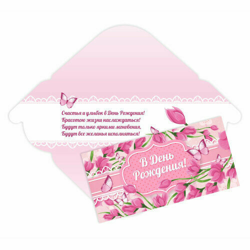 Конверт для денег стандарт «С Днём Рождения - Тюльпаны»