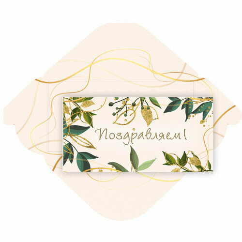 Конверт для денег стандарт «Поздравляем - Листья»