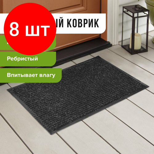 Комплект 8 шт, Коврик входной ворсовый влаго-грязезащитный LAIMA, 40х60 см, ребристый, толщина 7 мм, 602863