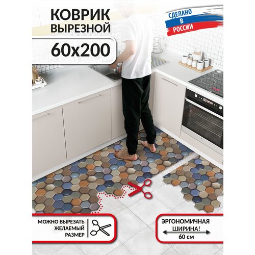 Коврик в кухню на пол, нескользящий, вырезной, безворсовый Icarpet PRINT 60х200 Соты 3D микс