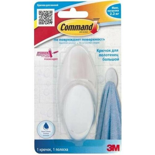 3M BATH17 Крючок для полотенец с водоуст. системой крепления command, легкоудаляемый, большой, 1 шт. 3m