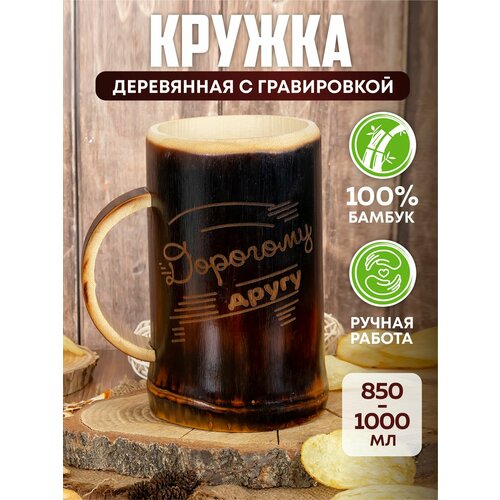 Кружка деревянная с гравировкой Дорогому Другу