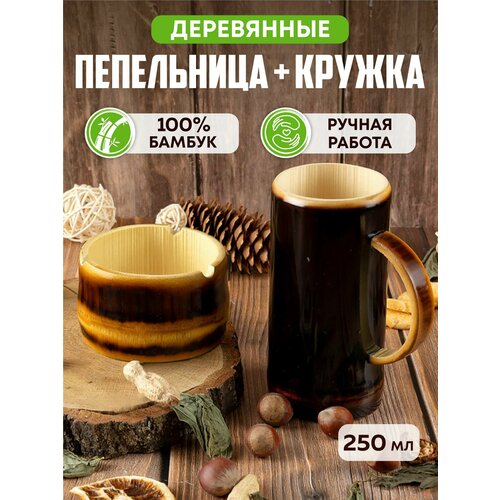 Кружка для пива деревянная 250 мл + урна из бамбука, набор 2 шт.