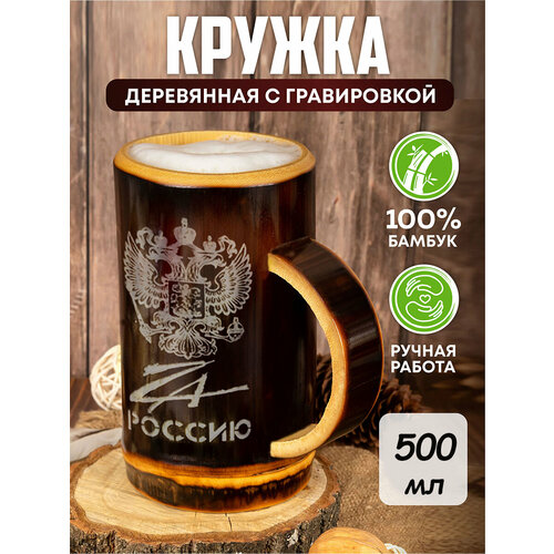 Кружка деревянная с гравировкой "За Россию" - 500 мл