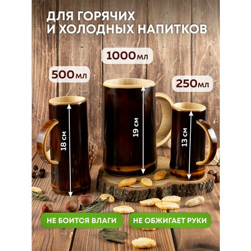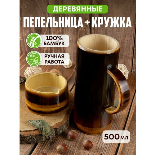 Кружка для пива деревянная 500 мл + урна из бамбука, набор 2 шт.