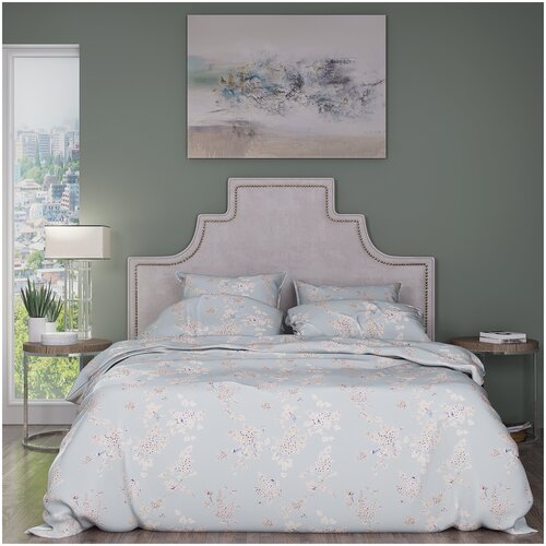 Постельное белье Asabella 100% тенсель люкс 2137-6 евро, cерый/фисташковый
