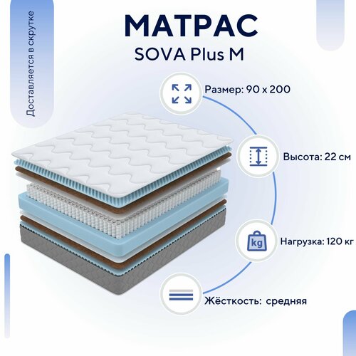 Ортопедический матрас, Анатомический матрас PRO-SON SOVA Plus M, Независимые пружины, 90х200 см