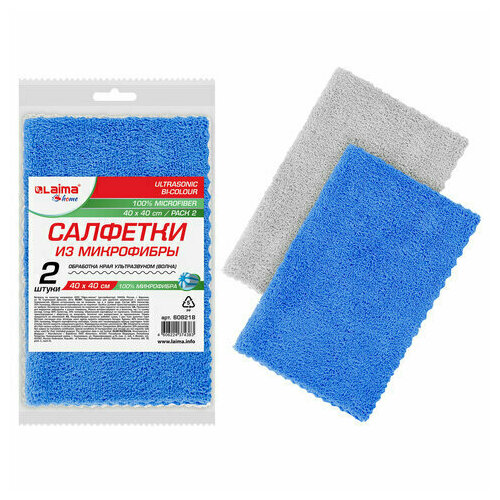 Салфетки из микрофибры 40х40 см комплект 2"ULTRASONIC BI-COLOUR PACK 2" LAIMA HOME, 3 шт