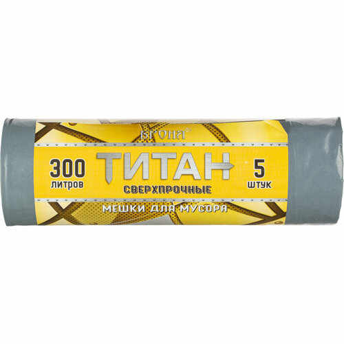Мешки для мусора ПВД 300л 80мкм 5шт/рул серые 105х150см Титан