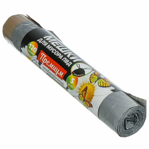 Пакеты для мусора 120 л, 5 шт, с завязками, 58х50, Ромашка, ПЗВ-120/5/24/С