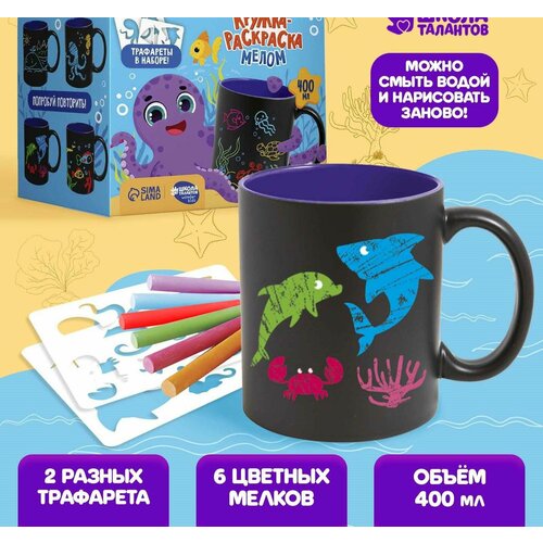 Набор кружка рисование мелом с трафаретом "Морской мир", 400 мл