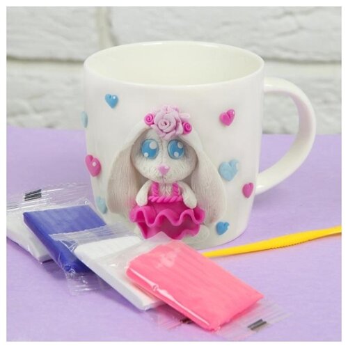Кружка для декорирования полимерной глиной "Зайка в платье" 300 мл