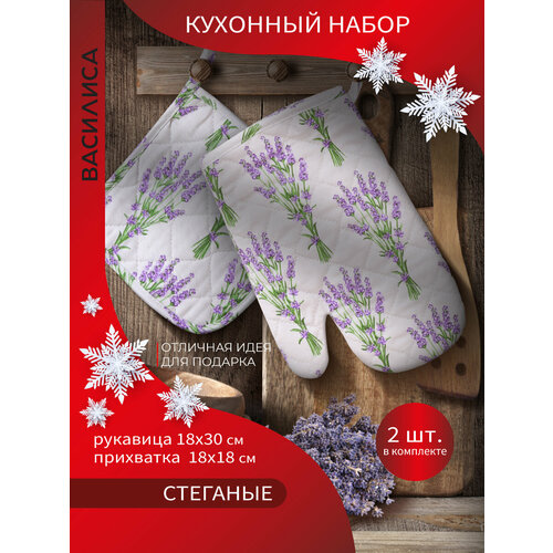 Набор кухонный (рукавица + прихватка) их рогожки, Букет лаванды