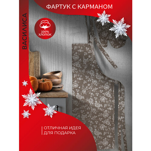 Фартук кухонный Василиса 60х80 см, с карманом, Рогожка, Розы на льне
