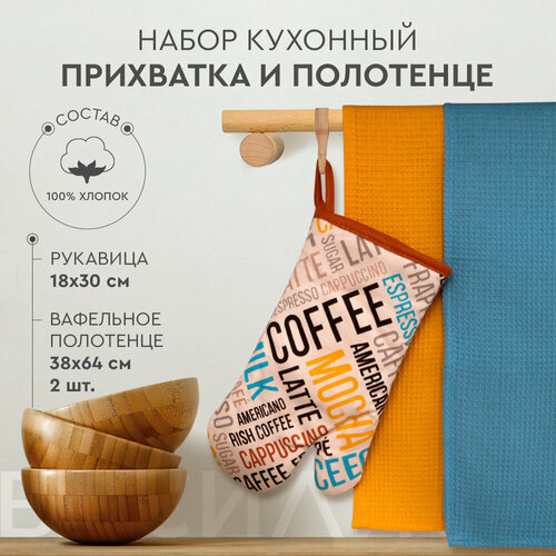 Набор кухонный Василиса Рукавица и 2 вафельных полотенца, хлопок 100%, Coffee