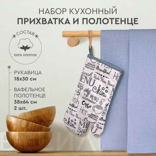 Набор кухонный Василиса Рукавица и 2 вафельных полотенца, хлопок 100%, Menu