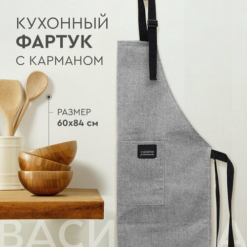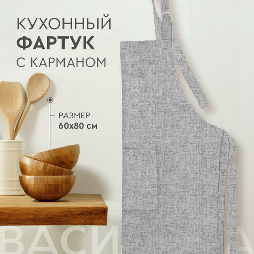 Фартук кухонный Василиса 60х84 см, с карманом, регулируемый размер, Серый