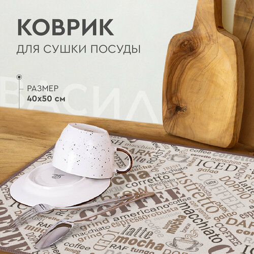 Коврик для сушки посуды Василиса 40х50 см, Микрофибра, Coffee