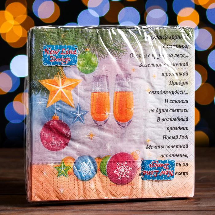Новогодние салфетки бумажные «Шампанское», 33х33 см, 3 слоя 100045803639