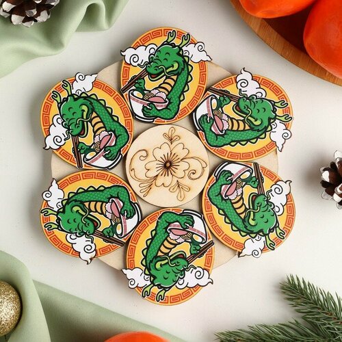 Подставка под горячее "Дракон с лапшой", 20х20 см, микс дерева