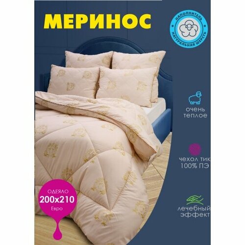Одеяло всесезонное Василиса Шерсть мериноса в тике П/Э 200х210