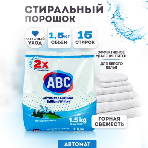 Стиральный порошок автомат ABC для белого Горная свежесть, 1,5 кг