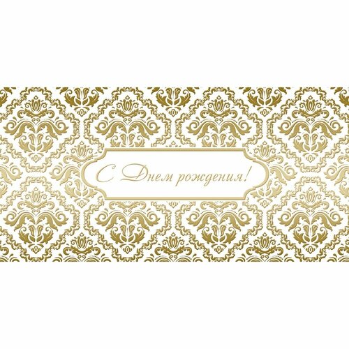 Открытка С Днем рождения, орнамент золотой фольгой 10.5х21см 10шт/уп 1528-03