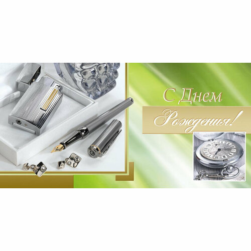 Открытка Сднем Рождения! Орнамент фольгой, 10 шт/уп (10,5х21 см) 1513-09