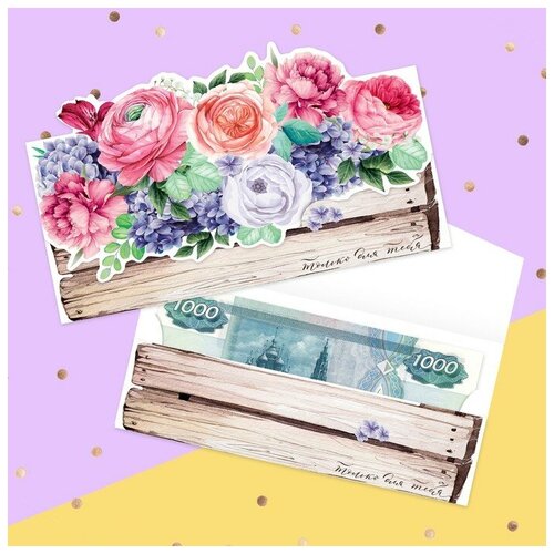 Конверт для денег «Коробка с цветами», фактурная бумага ВХИ, 16,5 × 8 см