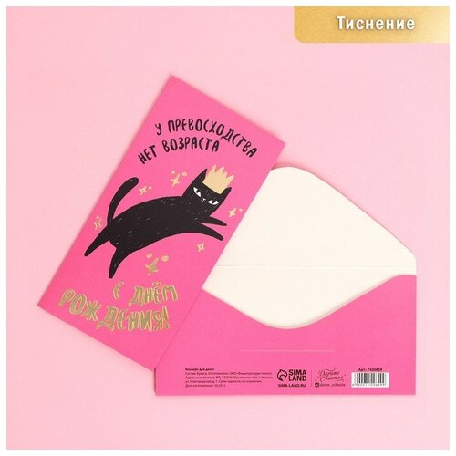 Конверт для денег «С Днем Рождения», кот, тиснение, 16,5 × 8 см