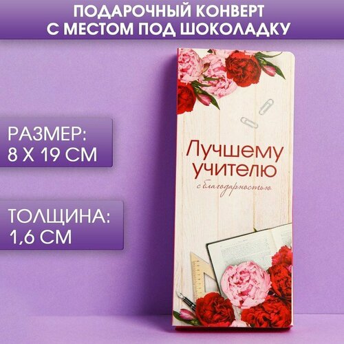 Подарочный конверт с местом под шоколадку «Лучшему учителю» (комплект из 50 шт)