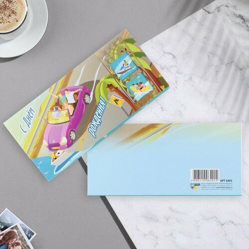 Конверт для денег "С Днём Рождения!" машина, друзья, 17,1х8 см
