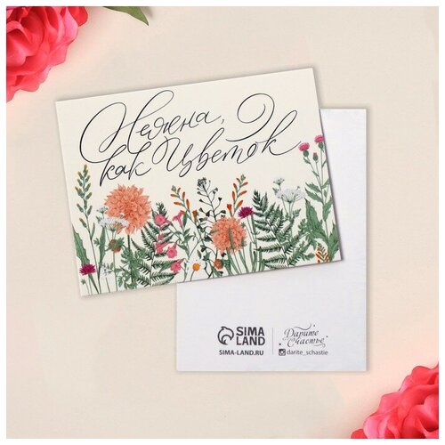 Открытка-мини «Нежна, как цветок», цветы, 8 × 6 см