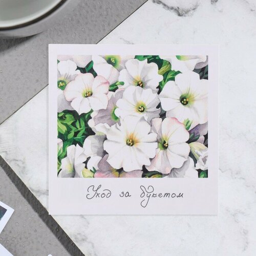 Открытка мини "Уход за букетом" белые цветы, 7,5 х 7,5 см(10 шт.)