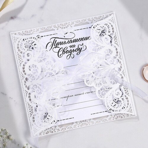 Приглашение на свадьбу с лентой «Два сердца - одна любовь», на пластике