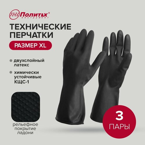 Перчатки хозяйственные латексные КЩС тип 1 размер XL, 3 пары Политех Инструмент