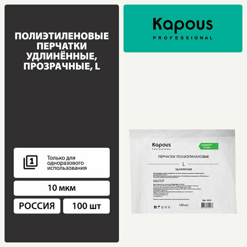 Полиэтиленовые перчатки удлинённые Kapous, 10 мкм, прозрачные, 100 шт/уп, L